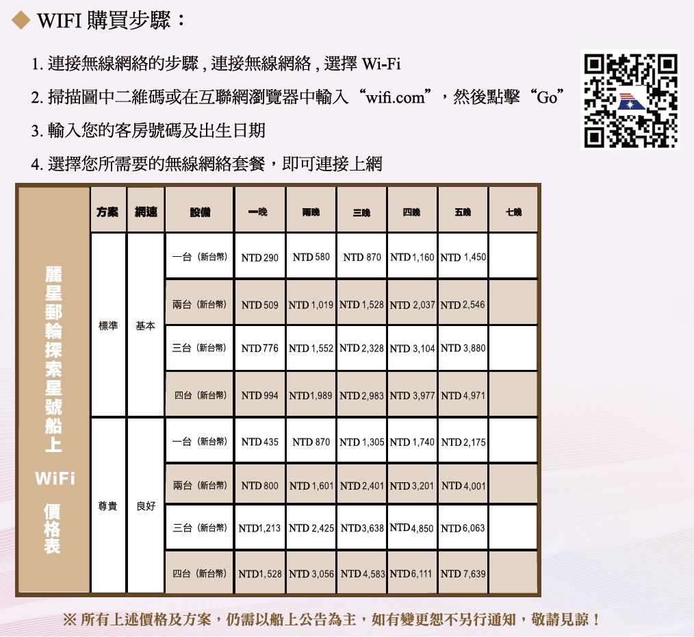 請於船上服務台加購